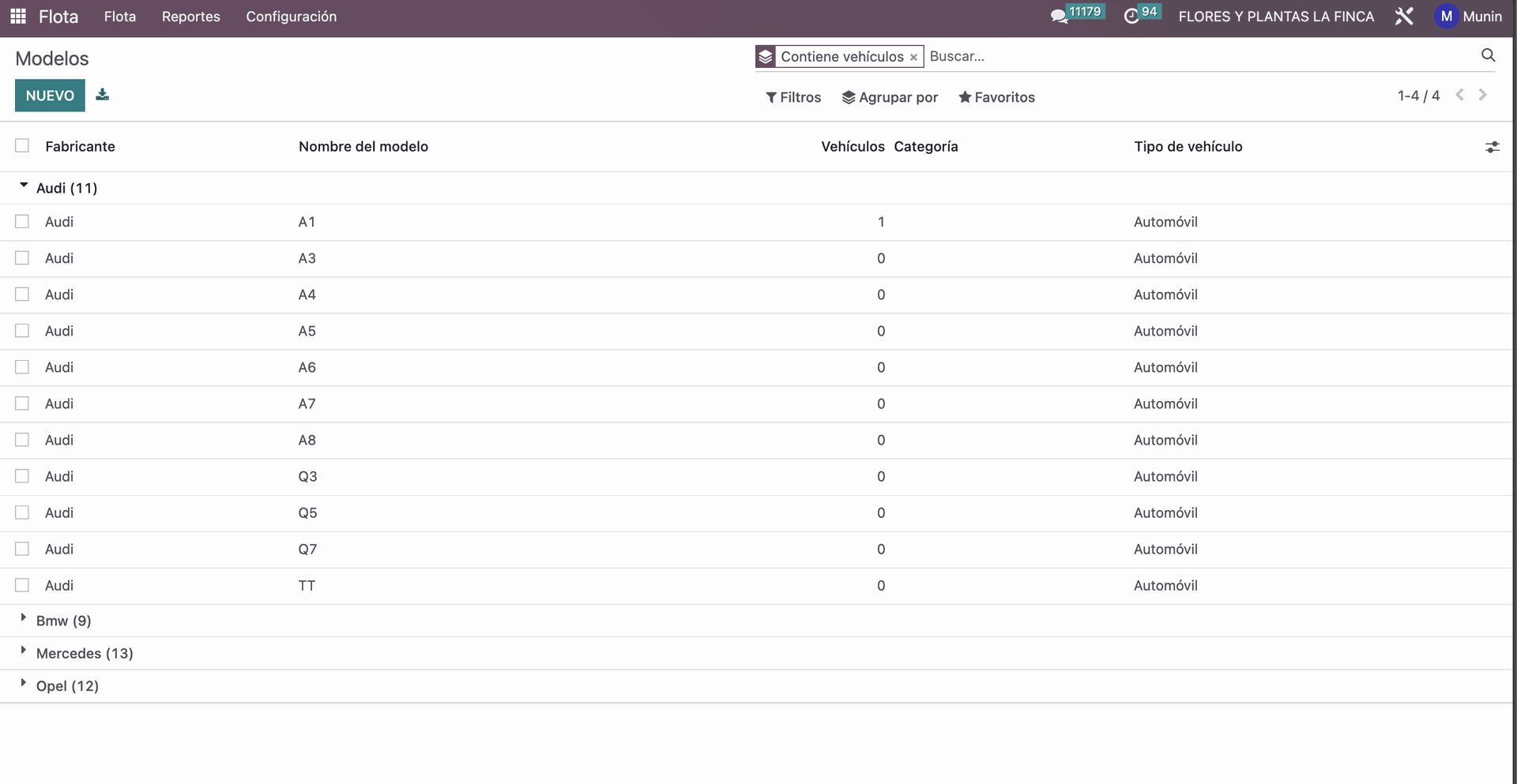 Ruta: Flota > Configuración > Modelos de Vehículos